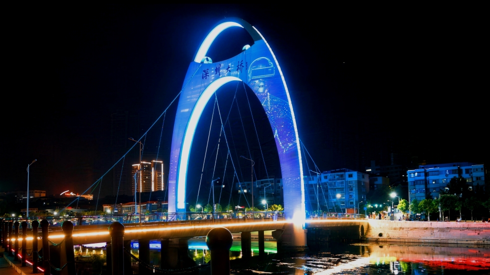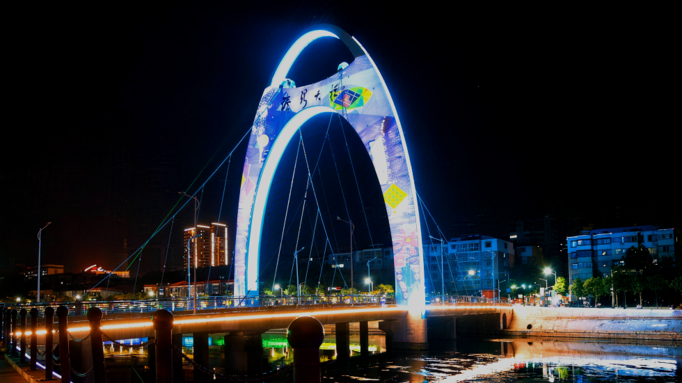 Utilizing the unique structural design of the bridge ingeniously, the robust bridge towers are transformed into a 'Gateway of Time and Space' connecting heaven and earth. The content of the scene changes with the solar terms, transitioning from spring's drizzle and blossoms, summer's lotus ponds and thunderstorms, to autumn's golden wheat fields, and winter's snow and festive atmosphere, vividly presenting the traditional aesthetics of Chinese solar terms in the form of a dynamic scroll painting on the steel bridge body.