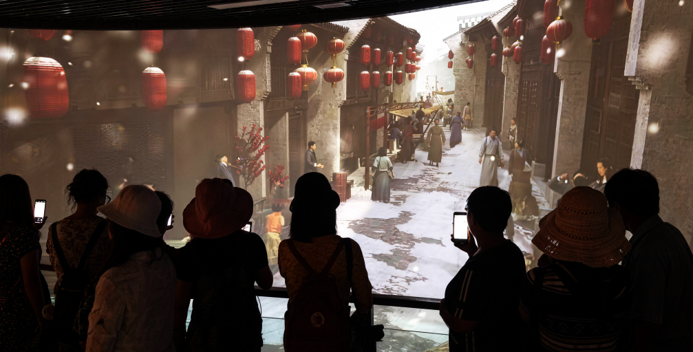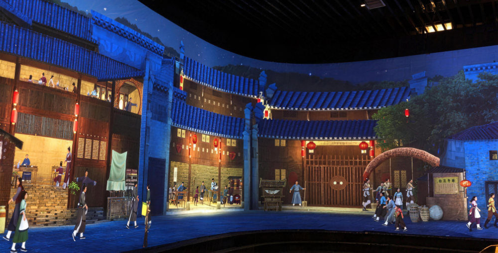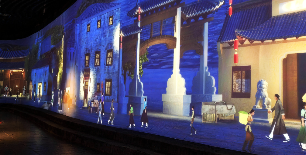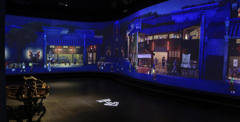 Reviving the ancient town’s past prosperity with light and shadow. You may linger in the old teahouse of yesteryear, where light and shadow trace the waiters hurrying to and fro. Tea guests sit around the eight-sided table, steam curling gently from their bowls.It seems the chatter and fragrance of tea still linger in the air. Step into the restaurant, bathed in warm yellow light. The fire blazes brightly in the hearth, wok stirring up the warmth and bustle of everyday life. The bustling street scene comes vividly alive in this play of light and shadow!