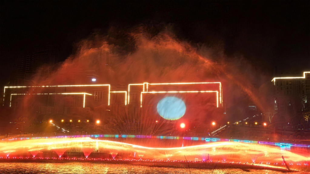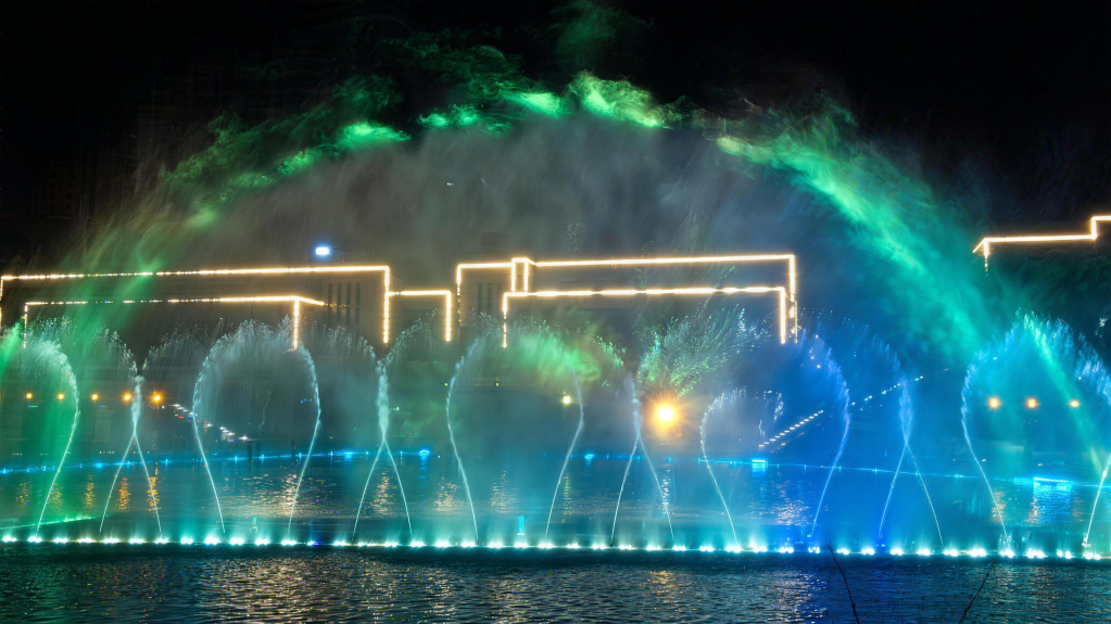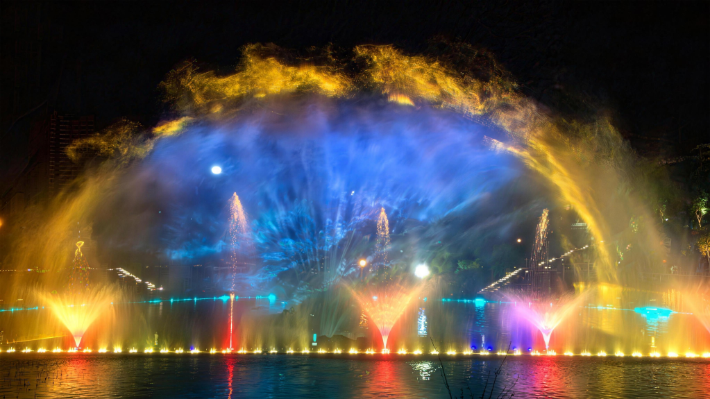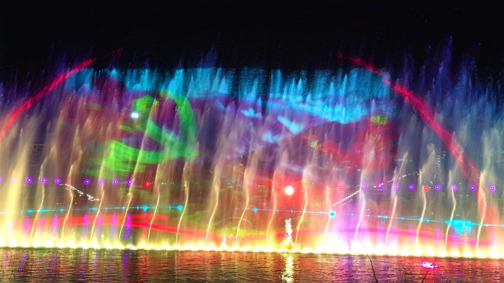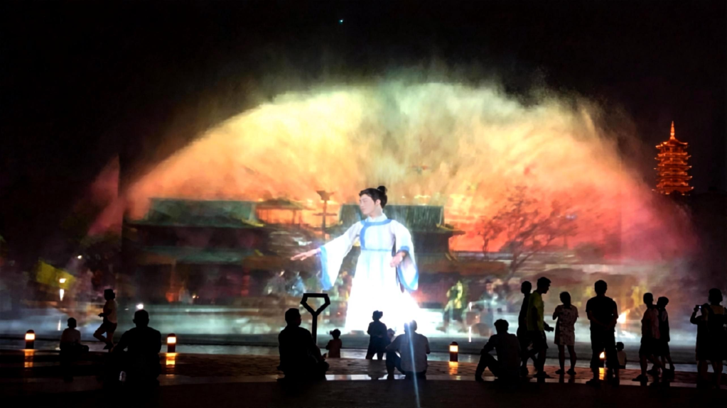 We utilize three projection water screens for imaging, and combined with the background of the local Kuixing Pavilion, we have created the story Kuixing Seizes the Top that integrates traditional culture with myths and legends. This story has been extremely popular among both local residents and foreign tourists.